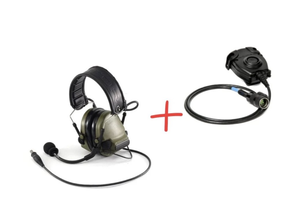 Střelecká sluchátka Peltor Comtac V s mikrofonem a Peltor PTT